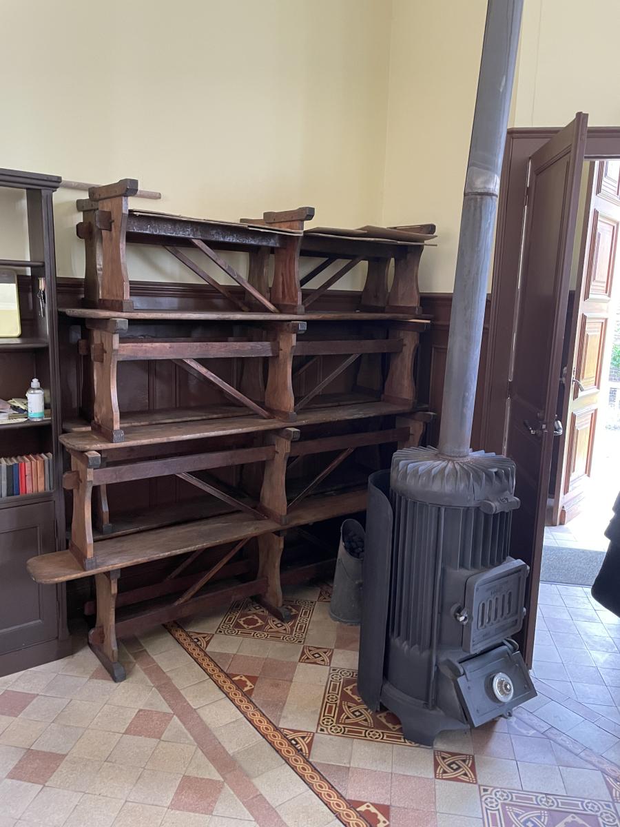 * Au centre ( ancien temple ) construit en briques couvert en ardoises de 94 m2 chauffée au bois ;