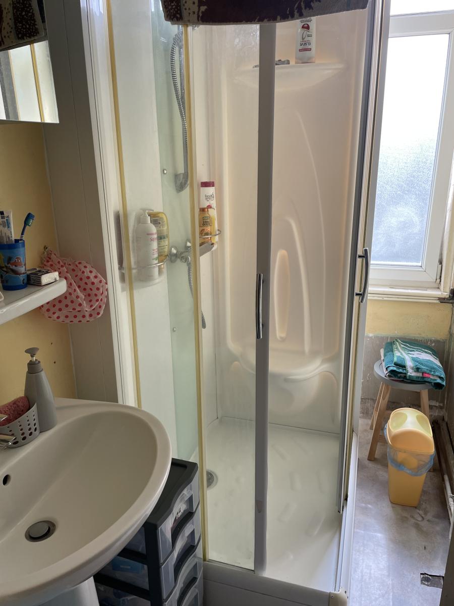 Un palier, 2 chambres, un wc, une salle de bain avec cabine de douche ;