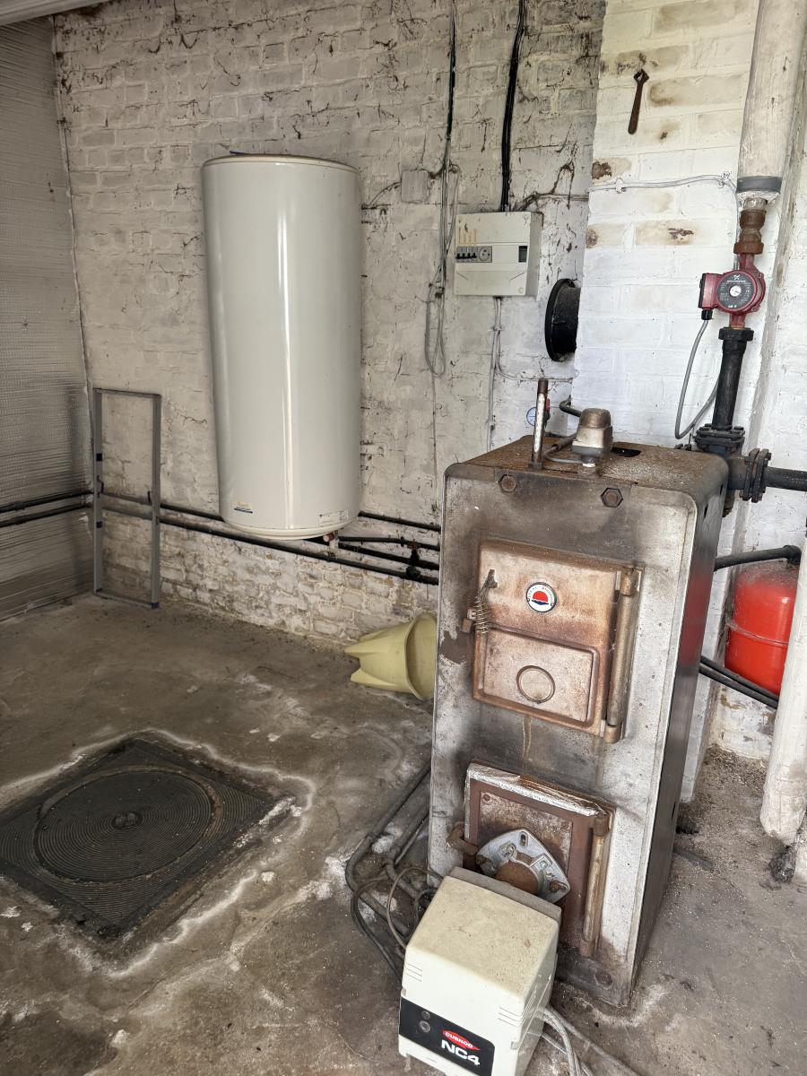 La maison est bâtie sur cave et raccordée au tout-à-l’égout. Le chauffage est actuellement hors service, vous permettant d’adapter le système selon vos besoins.