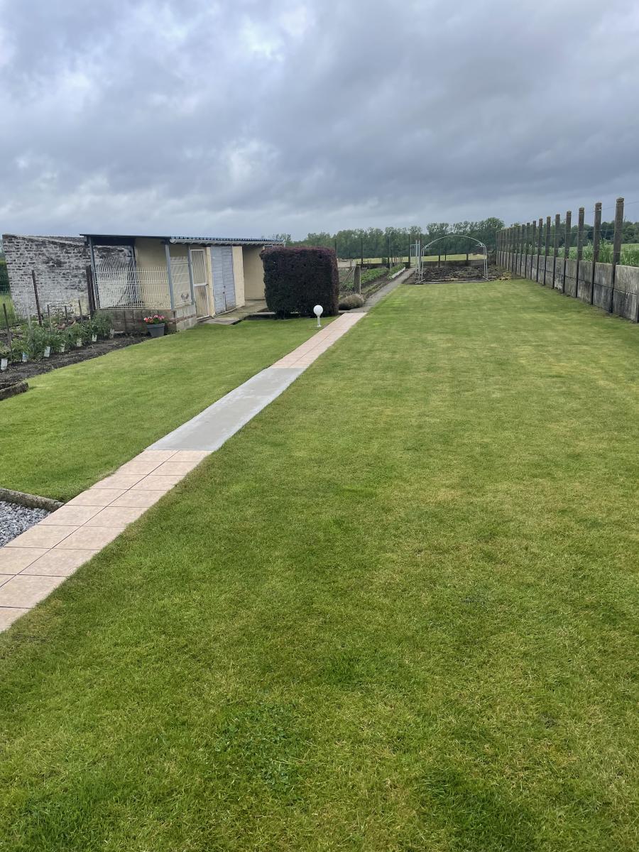 Située à Saint-Vaast-en-Cambrésis, cette maison individuelle en briques, bâtie sur cave, offre 111,01 m² habitables avec terrasse, jardin et garage.